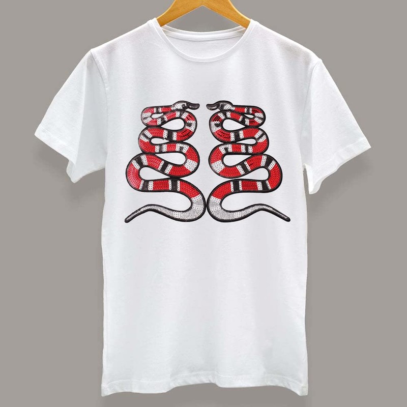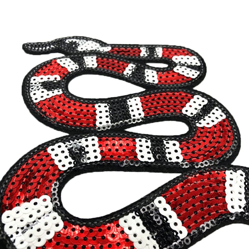 - This is a pair of large kingsnake serpent made of sparkling sequins. Perfect decoration for your biker jacekts, coats, T-shirts, denims or backpacks, etc. It can also be used to cover holes or broken parts of your favourite clothes so that you don't have to throw them away!