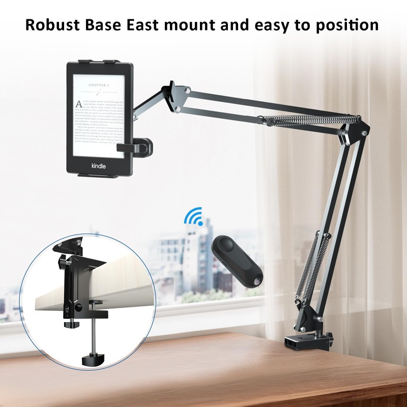 - 【 Adjustable & Handsfree Reading 】 This gooseneck arm makes you reading in bed baying down, with page turner remote included, handsfree when read with your e-Readers. Compared to other gooseneck holder, this design is more easily to adjust the angle you need, and hold your device more sturdy. Great gifts for book lovers readers.