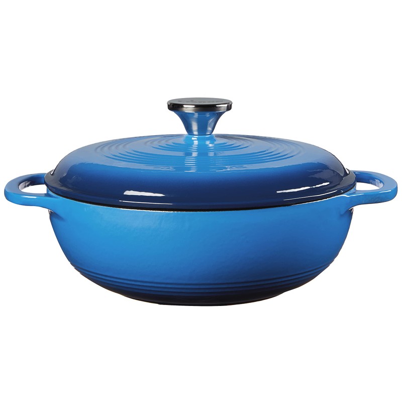 Lodge 3 Quart Enameled Cast Iron Dutch Oven with Lid – Dual Handles – Oven Safe up to 500° F or on Stovetop - Use to Marinate, Cook, Bake, Refrigerate and Serve – Caribbean Blue