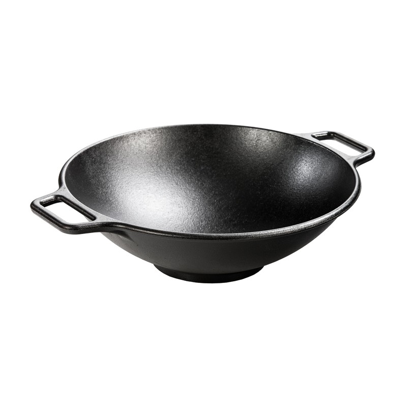 For authentic cuisines or home-spun favorites, the Lodge 14 Inch Cast Iron Wok offers a large cooking surface that retains heat, making short work of any dish. Complete with loop handles and a flat base for easier handling, the wok’s excellent heat distribution provides consistent, even cooking. It offers an abundance of possibilities. Use to sear, sauté, bake, broil, braise, fry, or grill. This wok is safe to use in the oven, on the stove or grill, and over a campfire. The Lodge Cast Iron Wok is made for decades of cooking and comes pre-seasoned for an easy-release finish that improves with use. Includes one Lodge 14 Inch Cast Iron Wok. Made in America. Care instructions for cast iron: 1. Wash with warm water. Add a mild soap, if desired. 2. Dry thoroughly with a lint-free cloth or paper towel. 3. Oil the surface of the pan with a very light layer of cooking oil while warm. Hang or store the cookware in a dry place.