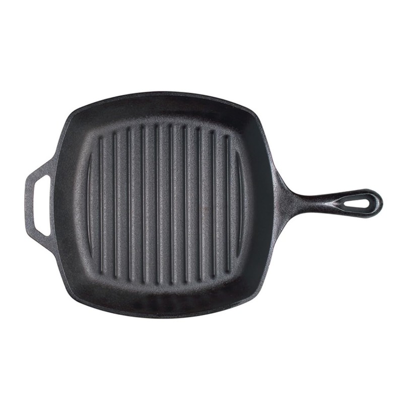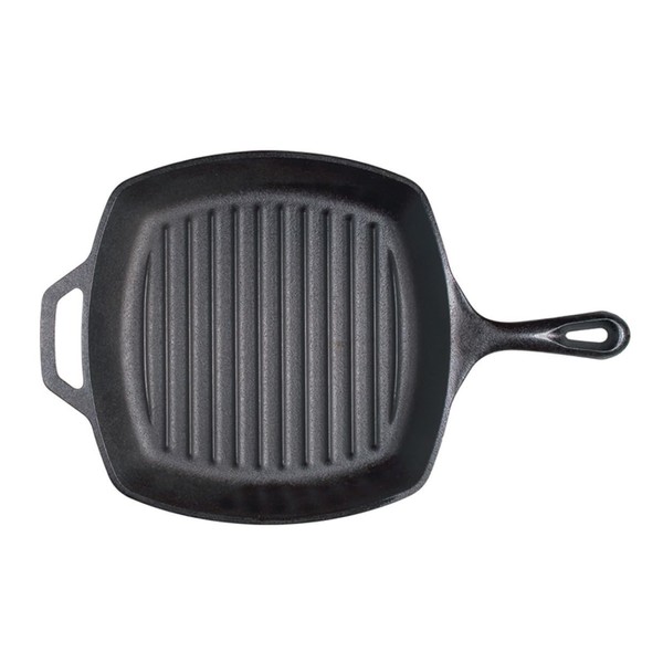 The Lodge Cast Iron Grill Pan allows grease to drain away from the food while creating tantalizing grill marks. This square grill pan is seasoned and ready to use and perfect for cooking bacon, steaks and more.