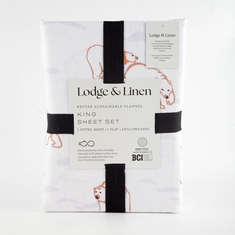 Lodge & Linen Lodge & Linen Flannel Sheets Twin Size Rich Cotton -High GSM Flannel Bed Sheet Deep Pockets - Warm & Cozy Flannel Sheet Set for All Seasons (Snow Bear)