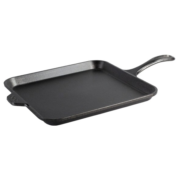 Seasoned and ready to use, the Lodge Cast Iron 11 Inch Square Griddle is crafted with shallow sidewalls to keep oil, batter, and other ingredients neatly contained. It's the perfect partner for preparing breakfast favorites, like eggs, bacon, and pancakes, as well as searing steaks or burgers.