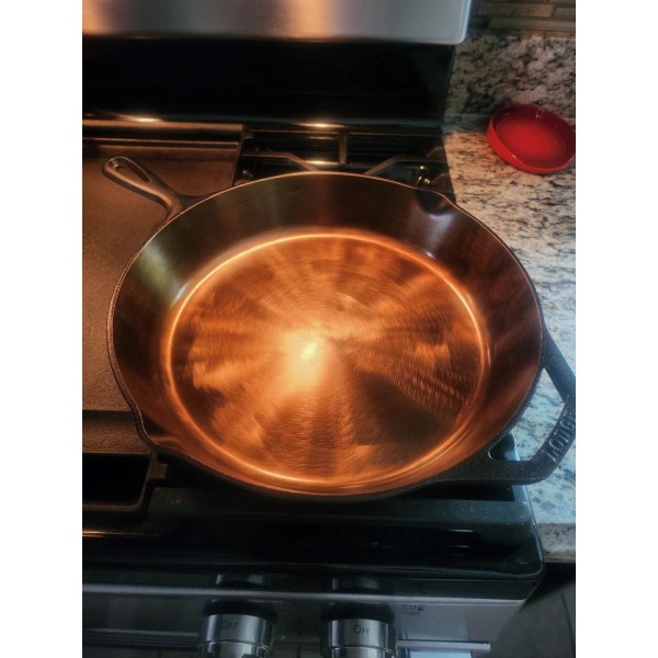If you are looking for the WOW factor when cooking with cast iron, something that can be passed on from generation to generation, here is the cast iron skillet for you! You will receive a smooth INSIDE BOTTOM AND SIDES (yet enough texture to bond the seasoning), beautifully bronzed finish pan to cook in while preserving the classic Lodge skillet black look on the rest of the pan.