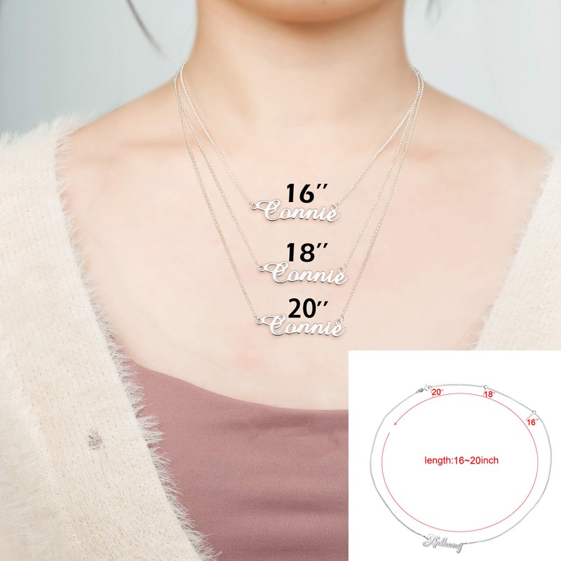 - Alicia Customized Necklace Engraved pendant and cursive font with your name; Adjustable Chain Length: chain extenders for 16"/18"/20"; For Product Size: 25mm Diameter