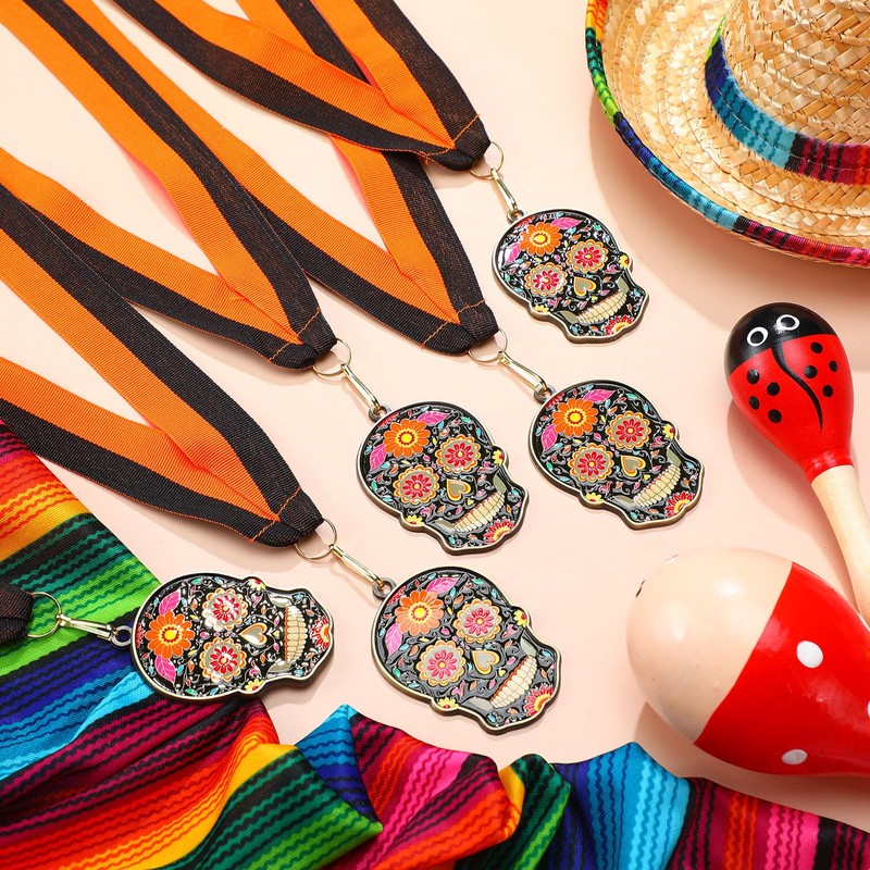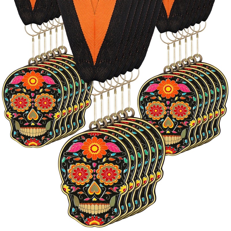 - Stylish and Eye Catching Glitter Medals: make your Halloween celebrations more vibrant with our set of 20 glitter metal Halloween award Day of the Dead skeleton medals; Made from quality metal, each medal features an expressive carved Day of the Dead skeleton pattern; The surface is added with gold glitter technology, bestowing a shiny and lively luster, definite to catch eyes