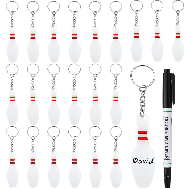 Loetere 36 Pcs Acrylic Bowling Pin Keychains Bowling Keychains Bowling Party Favors Carnival Reward Gifts Bowling Party Bag Gift Fillers Sports Souvenir with Marker for DIY Writing