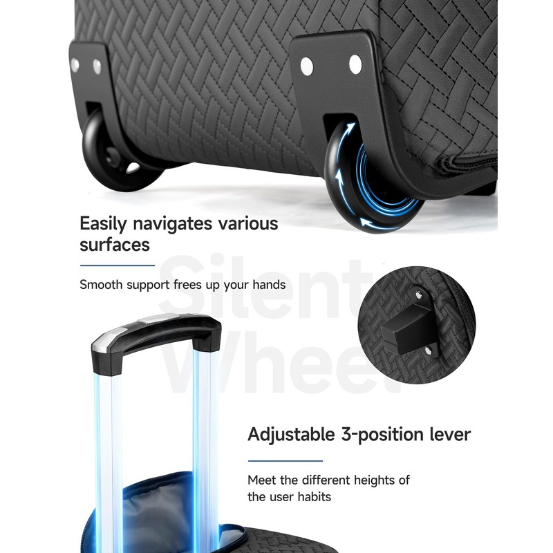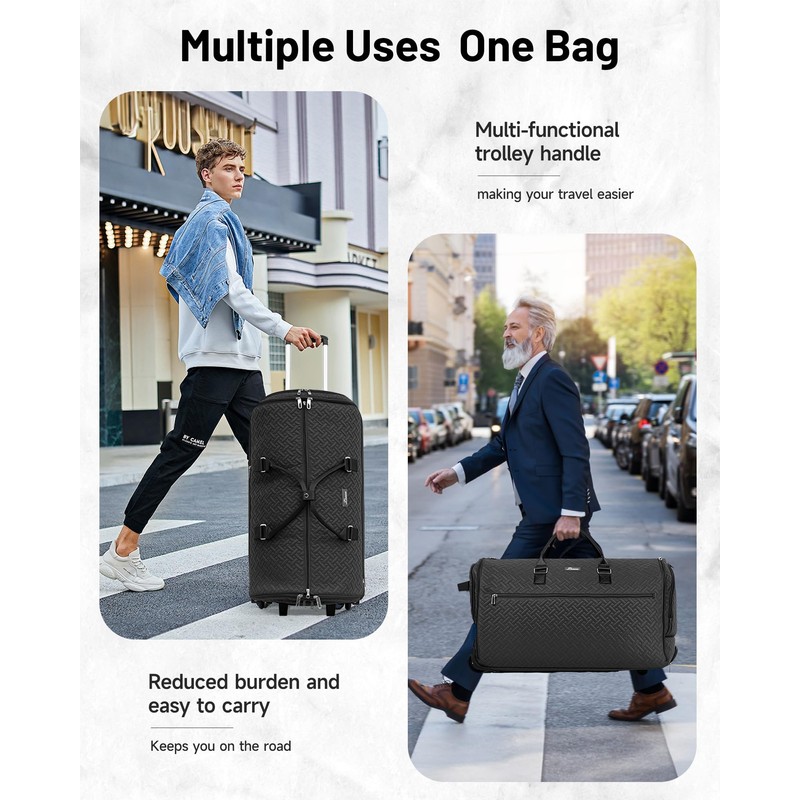 - 🚀 Effortless Movement--Navigate busy airports and train stations with ease thanks to our wheeled travel garment bag. Featuring smooth-rolling wheels and a telescoping handle, you can glide through crowds effortlessly. Keep your hands free for essentials or enjoy a hassle-free journey with travel companions. Say goodbye to the struggles of transporting luggage and embrace the convenience of seamless travel!