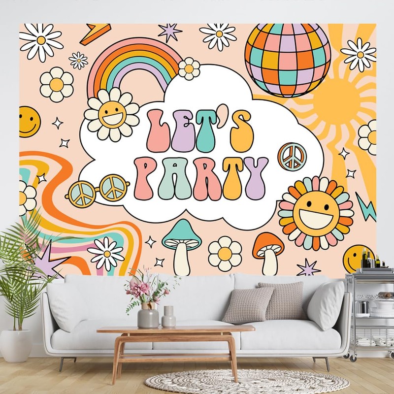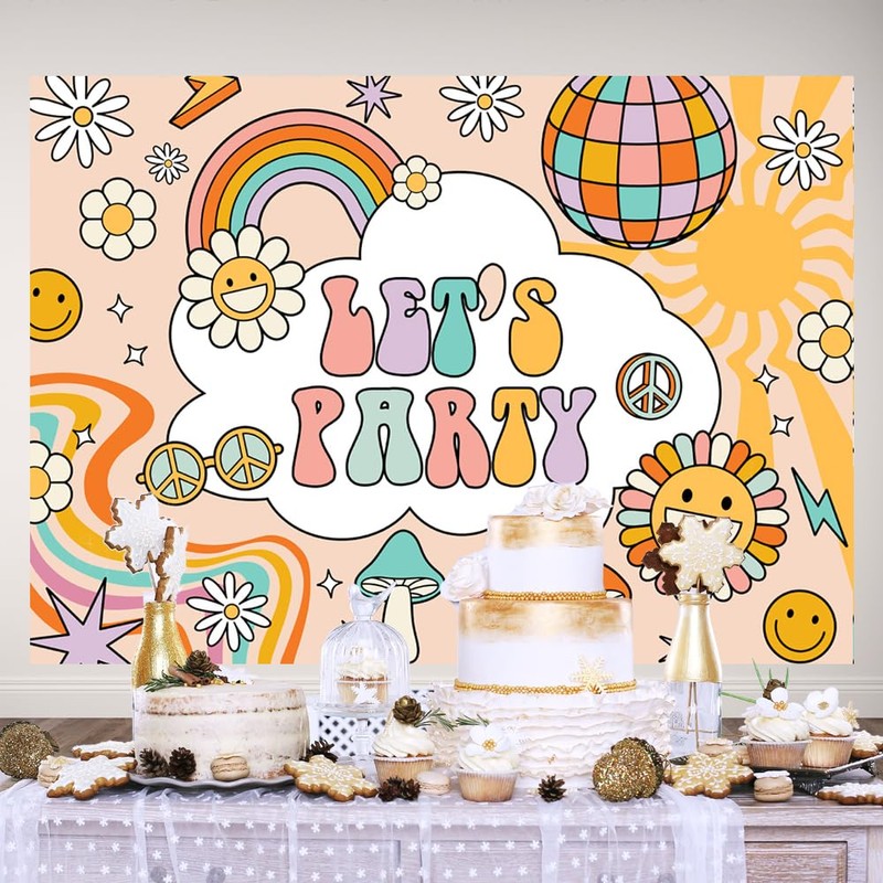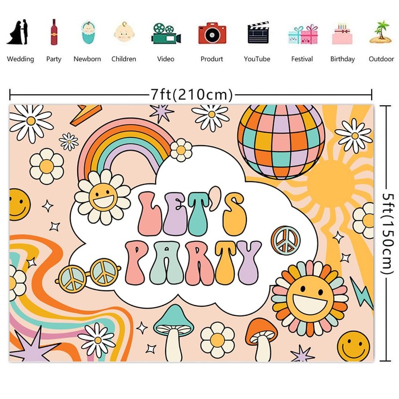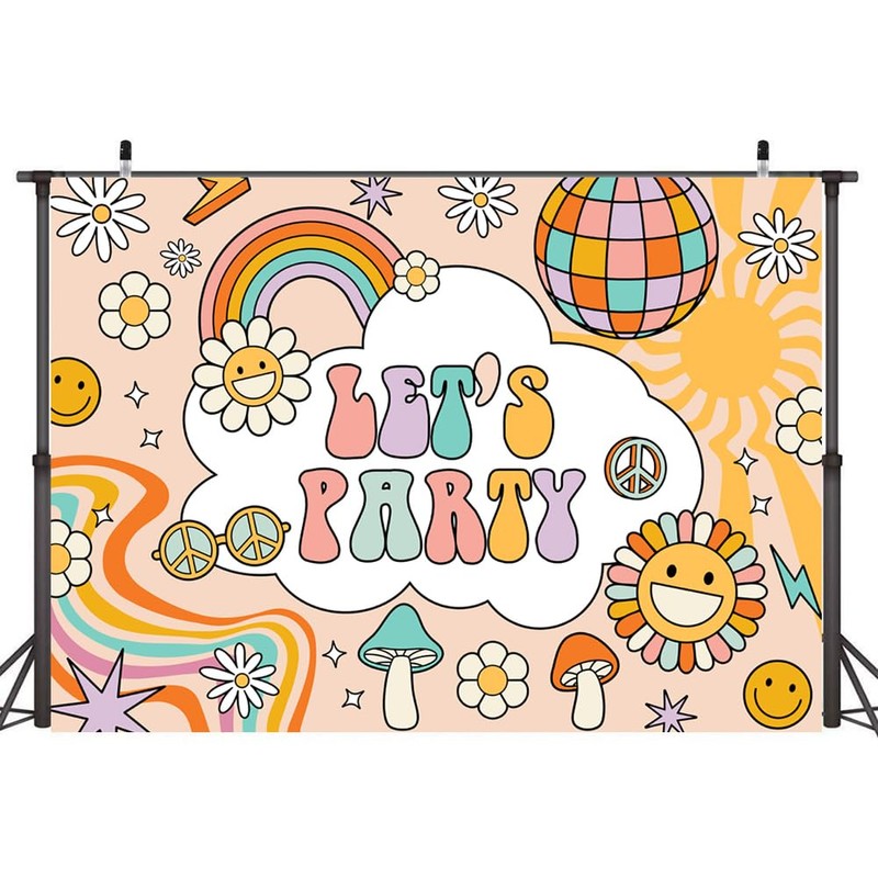 Lofaris 7x5ft Let's Party Backdrop Groovy Birthday Party Invitation Let's Party Birthday Boho Retro Flower Power 70's Girl Background Rainbow Hippie Daisy Photography Baby Shower Banner Photo Booth