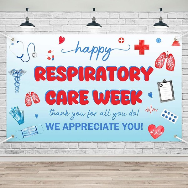 Lofaris Happy Respiratory Care Week Banner 70.8x43.3in Medical Appreciation Decor for Healthcare Professionals Doctors Nurses Thank You Party Backdrop