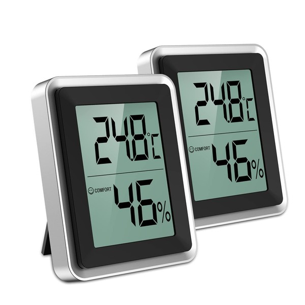 LOFICOPER Digital Thermometer, Hygrometer, 2 Pieces, Mini Weather Station, Small Thermo-Hygrometer, Humidity Monitor for Indoor Thermometer, -58℉ to 158℉, 10%RH to 99%RH, Switching ℃/℉