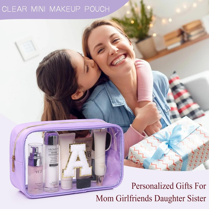 LOFOWN Initial Clear Makeup Bag Small Cosmetic Bag Travel Toiletry Bag Clear Zipper Pouch Purse Organizer Bags for Women, Purple-M, W, Initial Makeup Bag