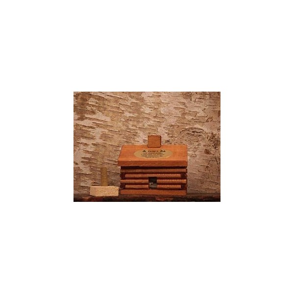 Log Cabin Burner with 10 pcs of Balsam Fir Incense from Paine Products in Maine. SIZE IS 3" X 4". Uses balsam fir incense logs. Refill packages available in this category