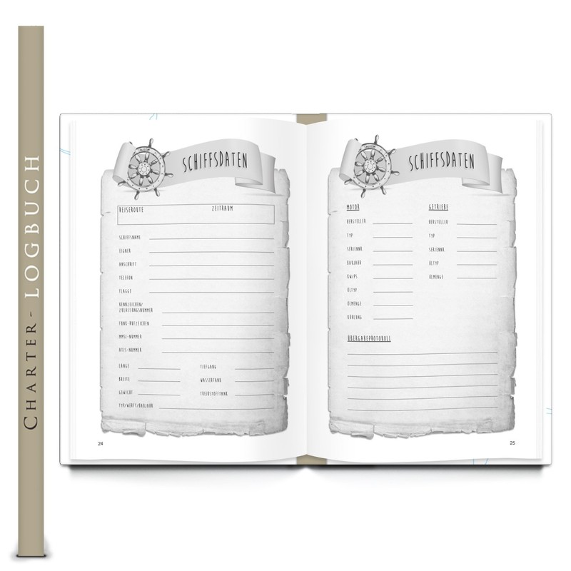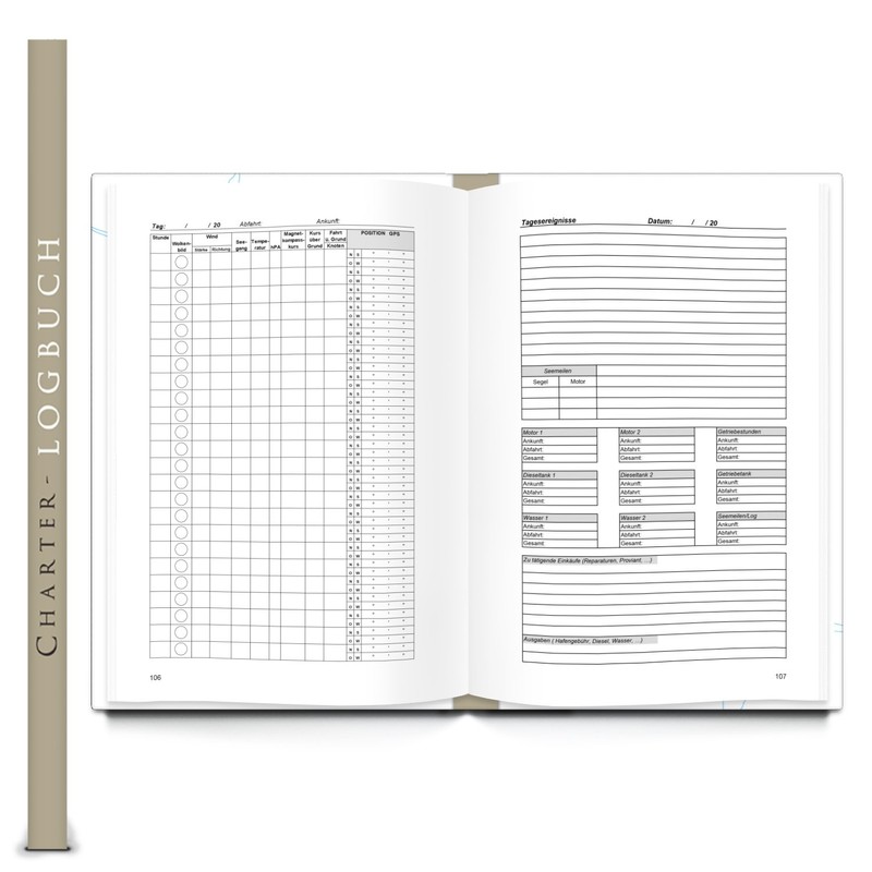 • DIN A4, hardcover, bound, 164 pages with 100 g/m² thick natural paper. In addition to this weekly diary, we also have a large log book for the ship owners as well as a nautical mile book. The board book for the charter yacht is also available in a set with the mileage book.