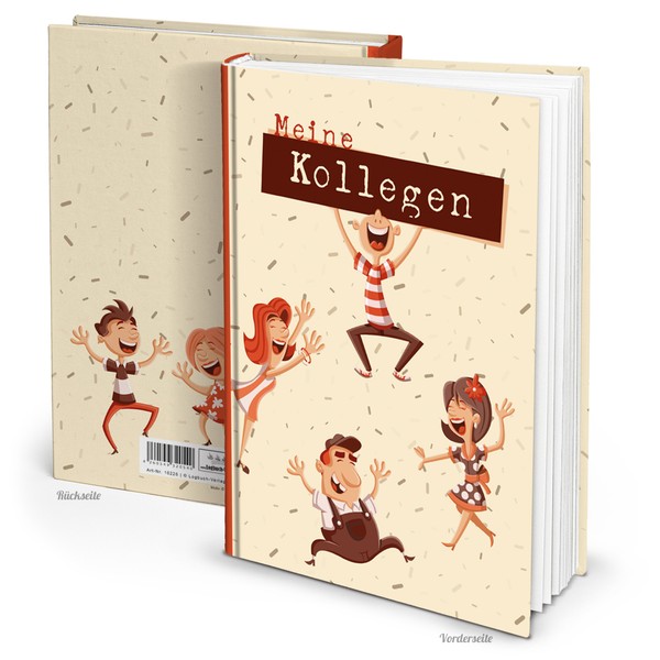 - Besonderes Kollegenbuch DIN A4 mit 132 stärkeren weißen Seiten bzw. 66 Blättern, faden-geheftet, gebunden, fester Einband. Vintage Cover mit lustigen herumspringenden Männchen als Motiv. Im Buchinneren ist für 60 Personen jeweils eine Doppelseite Platz - mit Vordruck und zum Selbstgestalten. In dem Einschreibbuch bzw. Ausfüllbuch oder eine Art Freundschaftsbuch für Erwachsene ist ausreichend Platz für Fotos und Texte. Es ist Platz für bis zu 60 Personen.