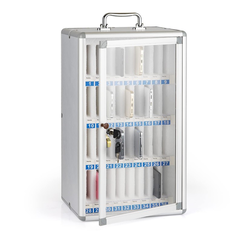 Loghot Aluminum Alloy Pocket Chart Cell Phones Storage Cabinet for Cell Phones,Wall-Mounted with a Locked,Can be Carried by Hand (36 Slots)