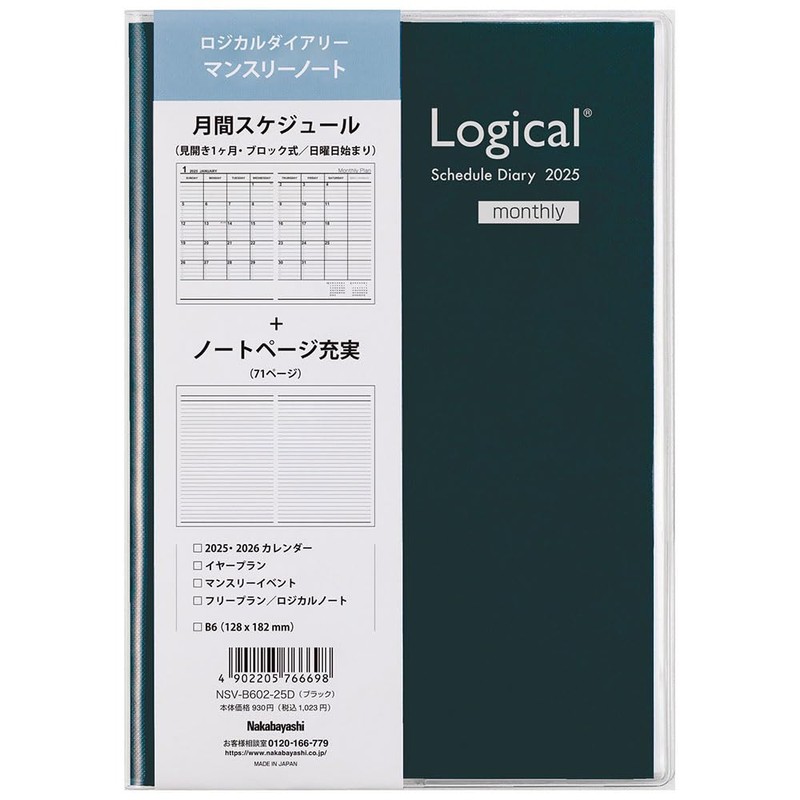 Logical Diary 2025 Cover Type Month/B6/Black NSV-B602-25D