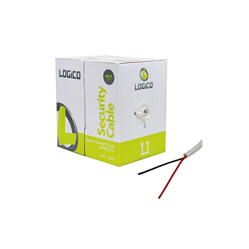 LOGICO Security Burglar Alarm 18/2 Control Cable 500FT Stranded White 500' Speaker Wire