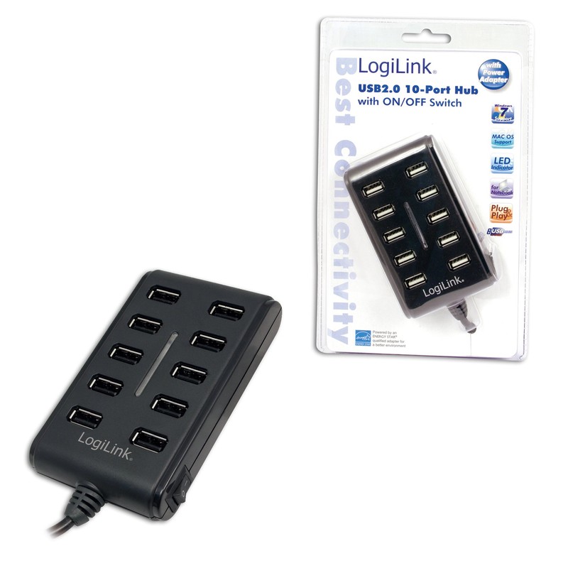 Logilink 10 Port Usb 2.0 Hub On/Off Sc