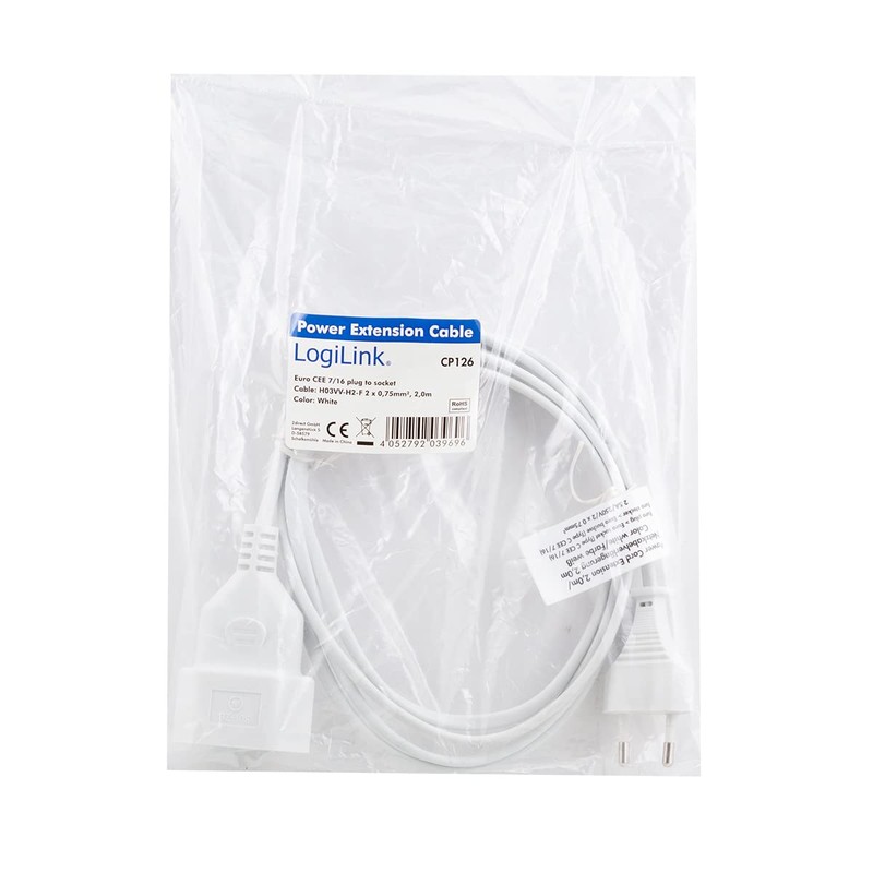 LogiLink CP126 Power Cable Euro CEE 7/16 Male to Female 2 m White