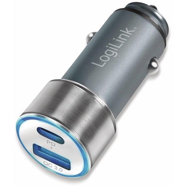 LogiLink PA0252 - USB Car Charger Adapter, 1x USB-C PD, 1x USB-A QC, 36W