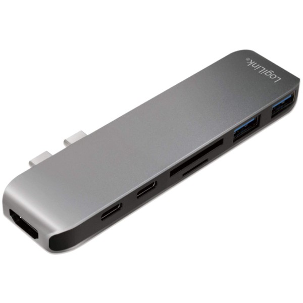 LogiLink Type-C Aluminum Body Multifunction Hub USB3.0/SD/Micro SD/Thunderbolt 3/4K HDMI for Macbook Pro 13/15 inch, 100W PD Support (Silver)