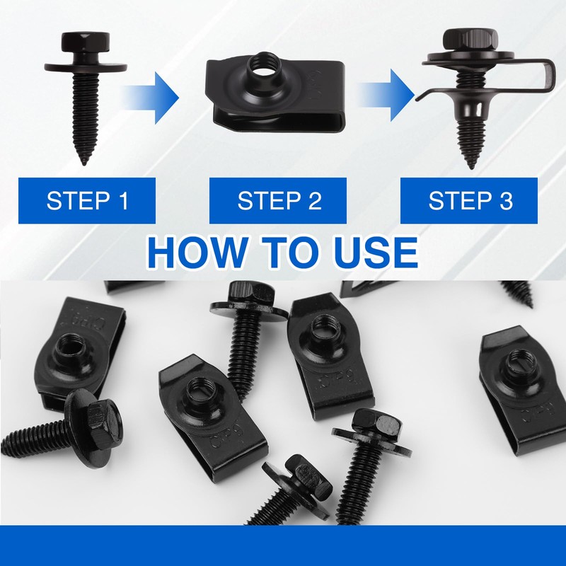 • Versatile Use: Ideal for fixing car door trims, fenders, splash guards, bumpers, radiator grilles, side skirts, hood shields, grilles and more. Replaces worn screws