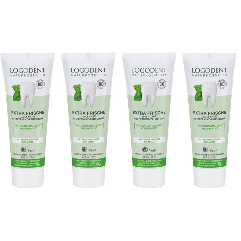 Logona Extra Fresh Daily Care Peppermint Toothpaste, 4 x 75 ml