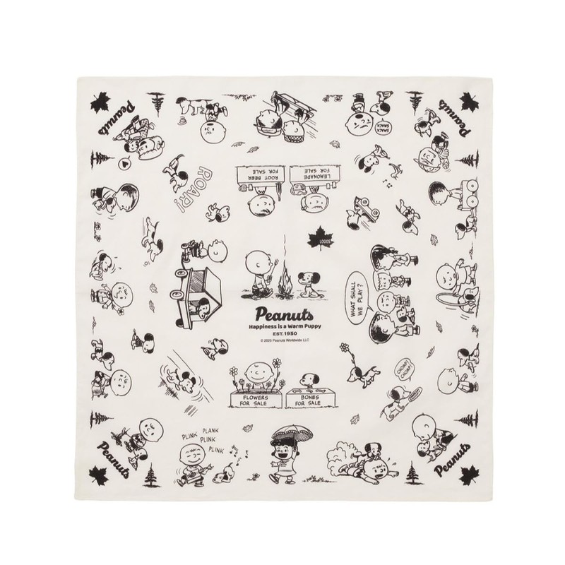 - 75th Anniversary Original Design of the Comic Peanuts: This bandana features a commemorative design that uses vintage art in the early 1950s where Peanuts were born. Peanuts friends like Snoopy and Charlie Brown are designed to enjoy the outdoors