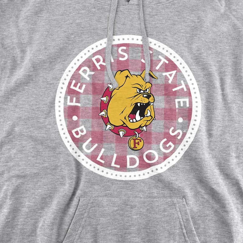 LOGOVISION Ferris State University Plaid Badge Adult Pull-Over Hoodie, Athletic Heather, Small