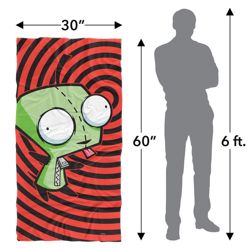 • INVADER ZIM INVADER ZIM GIR SPIRAL 30" x 60" BEACH TOWEL - This lightweight and compact beach towel is soft and comfortable, breathable, and durable. It is super absorbent to dry you quickly. The front features microfiber polyester for maximum color vibrancy and the back features cotton for maximum absorbency.