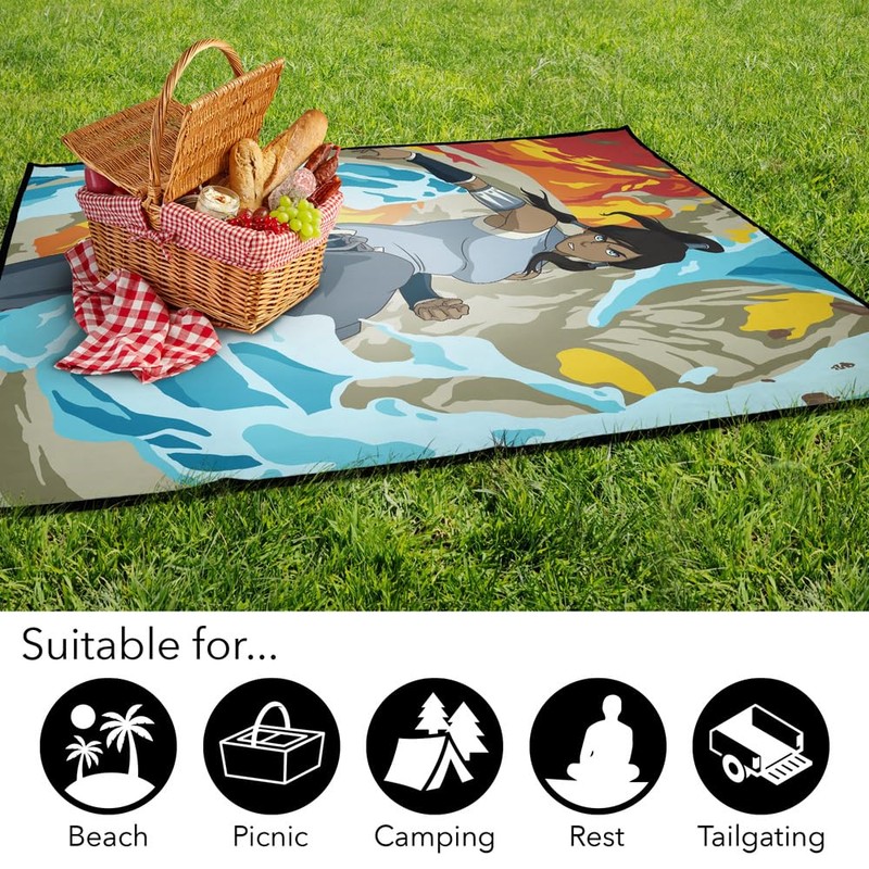 LOGOVISION Legend of Korra Picnic Outdoor Blanket, 50"x60" Korra Avatar, Foldable Blanket for Picnic, Beach, Camping, Park, Tailgate