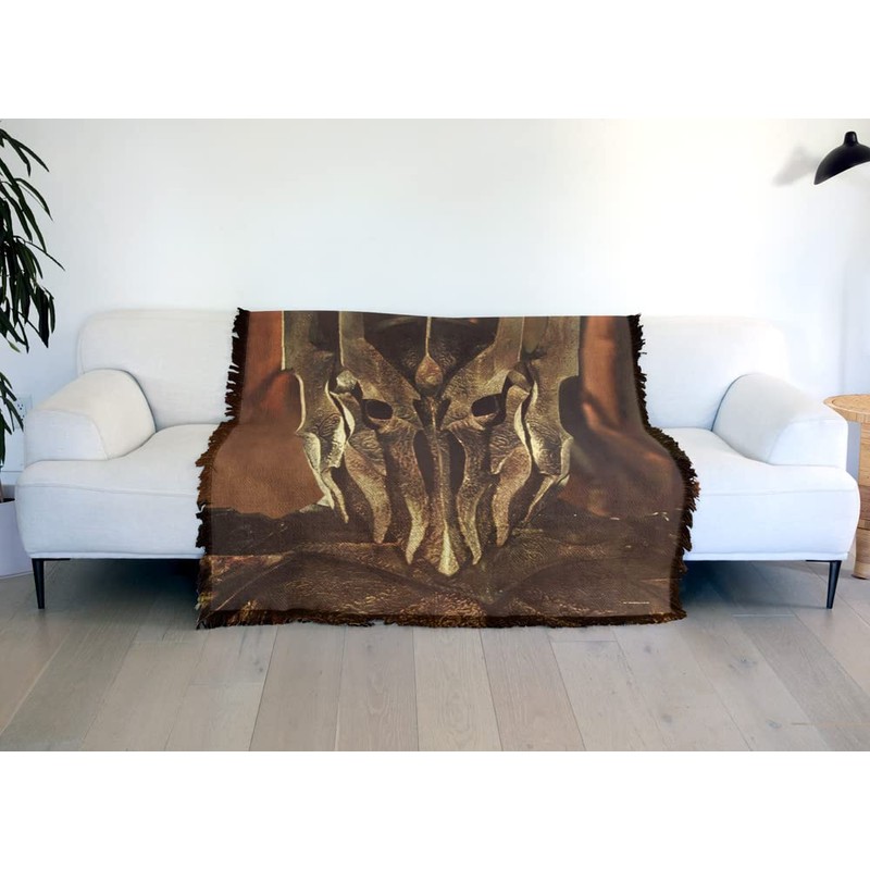 - THE LORD OF THE RINGS SAURON BOUND BY FIRE WOVEN THROW BLANKET 50" x 60": Our woven throw blanket with fringed trim features a fabric weight of 530gsm and offers endless warmth and comfort. The ideal gift for the fan in your life, our cozy all-season blanket is generously sized, making it perfect for beds and couches, wall decor, or use while travelling.