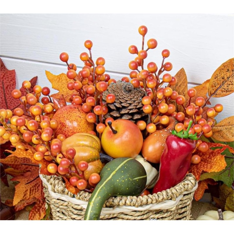 • 【Exquisite Appearance】: Purely handmade orange berry branches, pursuing perfection in every detail, using gradient color combination, the colors are more vivid, helping you stand out from the crowd of autumn decorations.