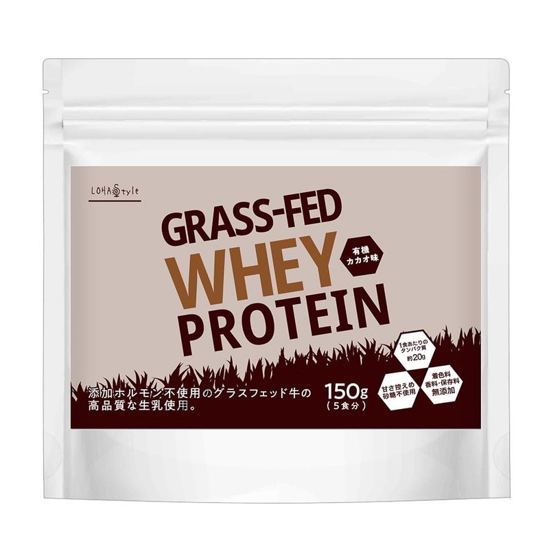 LOHAStyle(ロハスタイル) グラスフェッド ホエイプロテイン 有機ココア味 150g 人工甘味料不使用 (USDA認証取得原料) 無添加 お試し WPC 牛成長ホルモン不使用 天然甘味料ステビア使用 カカオ チョコ
