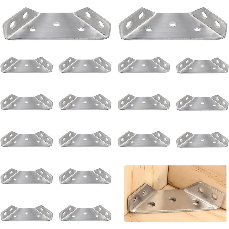 - PACKAGE OF 20 MULTIFUNCTIONAL SMALL CORNER CODES The size of stainless steel angle brackets is 2.56 inch length on the long side 0.94 inch length, 0.87 inch width, 0.55 inch height, and the diameter of the small hole is 5mm. Please note that this product does not come with screws. Please use the correct size screws when using.
