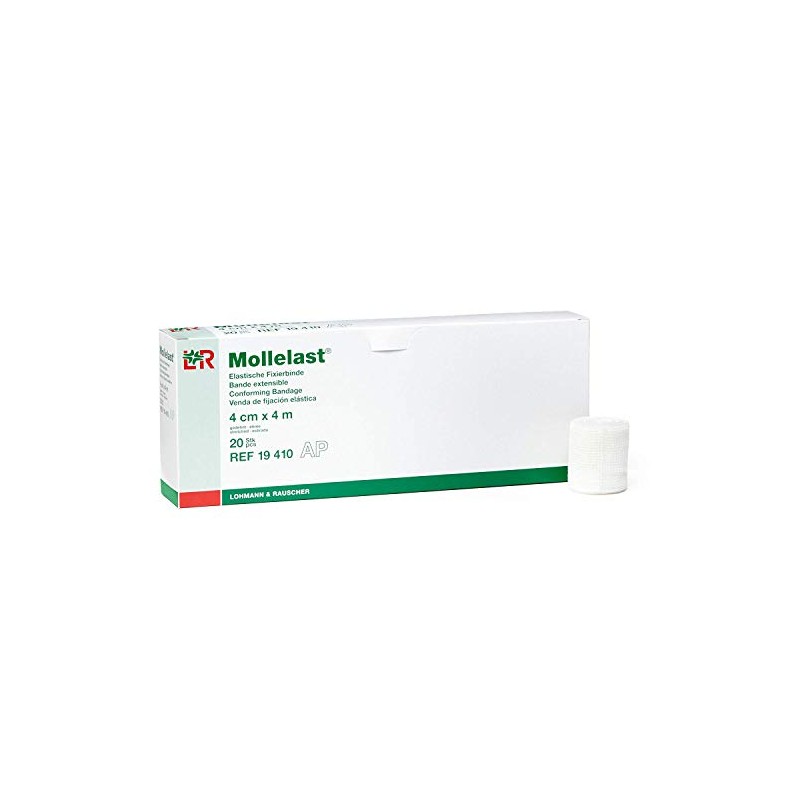 Lohmann & Rauscher-58415 Mollelast, Conforming Open-Weave Gauze Bandage, 4cm x 4m, White, Box of 20 Rolls