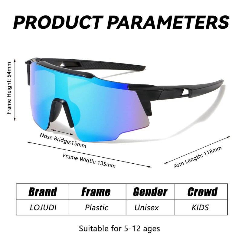 LOJUDI Sports Kids Sunglasses Boys Girls - Cycling Childrens Sunglasses for UV400 Protection-Blue Mirrored