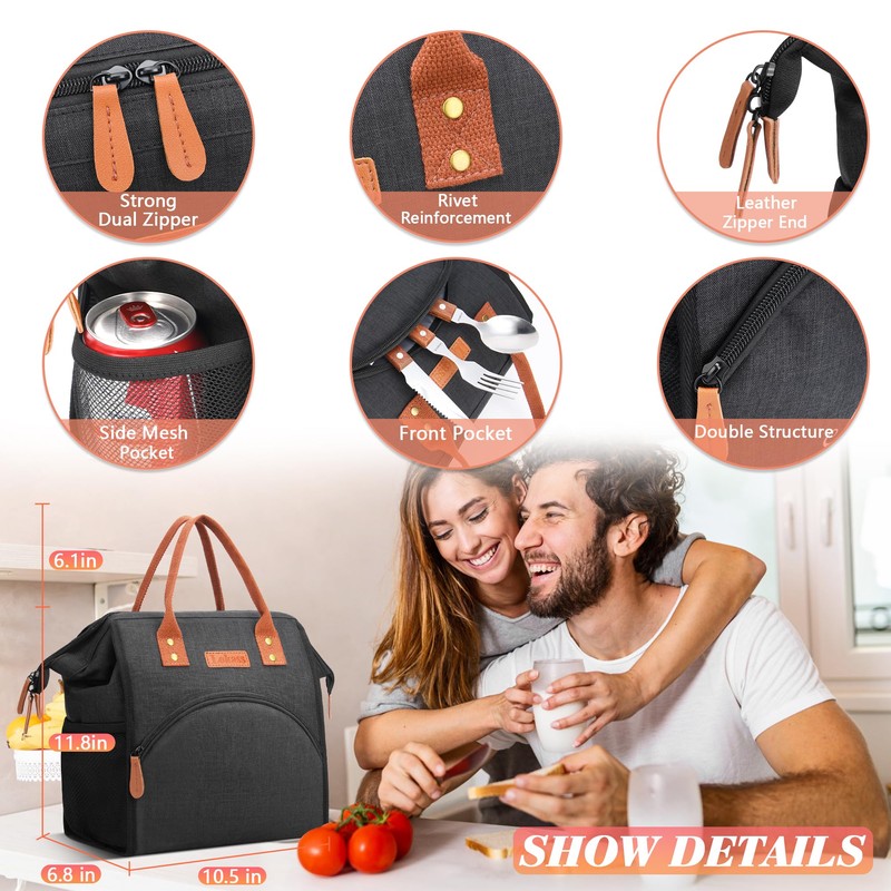 - WIDE OPENING DESIGN - The top part of the bag opens up to 26.5 x 15 cm with a double zip. So you can conveniently pack and unpack your lunch box horizontally. The large opening makes it easy to access and prevents liquids from leaking and staining the inner lining. Saves time when cleaning.