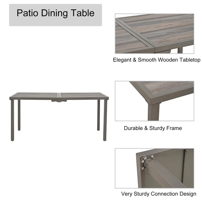 - Wide Application: Rectangle Patio Dining Table has a simple and elegant exterior design, which is not only suitable for outdoor areas such as backyards, porches, balconies, gardens, and swimming pools, but also for family dining, small gatherings, work lunches, or daily office work. Its sturdy and durable design, as well as spacious desktop space, make it an ideal choice for various occasions
