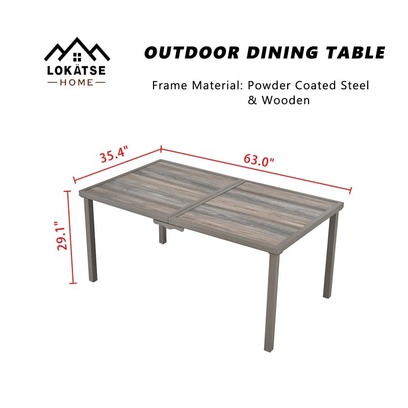 - Sturdy Frame Structure: The sturdy steel frame of the Outdoor Patio Dining Table provides excellent stability and durability. The steel is finely processed to ensure its durability and safety for long-term use. Combining natural wood on the desktop not only showcases industrial aesthetics, but is also suitable for withstanding various challenges in daily use