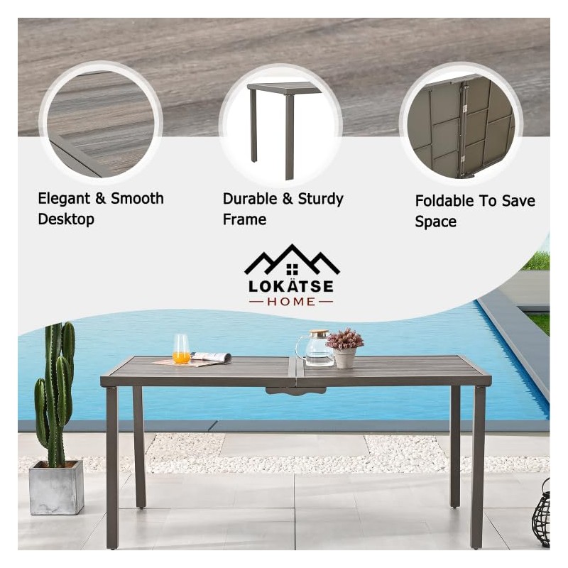 LOKATSE HOME Outdoor Patio Dining Table Rectangular with Wood-Like Tabletop and Powder Coated Steel Frame for Backyard Deck Lawn Garden, Grey
