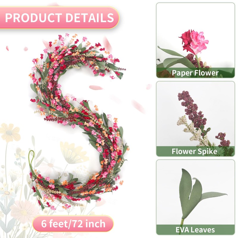 - Choose High Quality Materials: Our garland is made of the best quality materials, the bright paper flowers are all hand-dyed, unique dyeing technology makes the wreaths not easy to fade, the hand-cut EVA leaves are real to the touch, the flower spikes are full and lovely, and the whole garland is beautiful and full of texture.