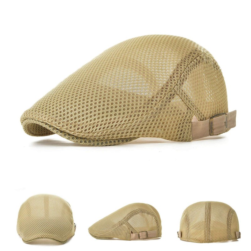 LOKIDVE 2 Pack Men's Mesh Newsboy Ivy Hat Breathable Summer Gatsby Golf Flat Cap Khaki and Grey