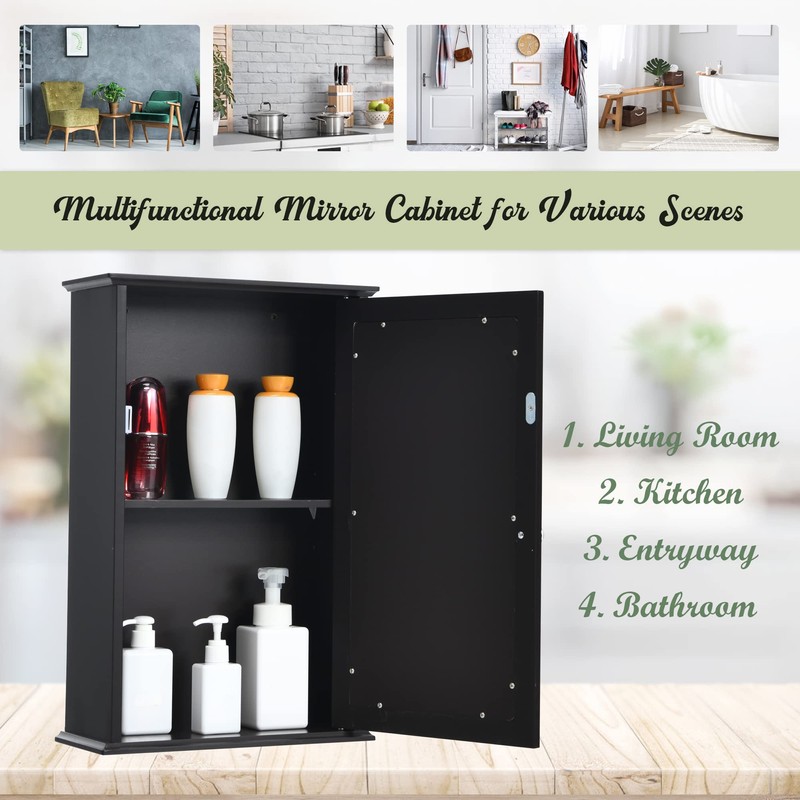 - 【Adjustable Shelf】The middle shelf inside the wall cabinet is adjusted in three positions while the distance between each is about 1.5 inches, giving you more choices to customize the storage space for better storing daily necessities.