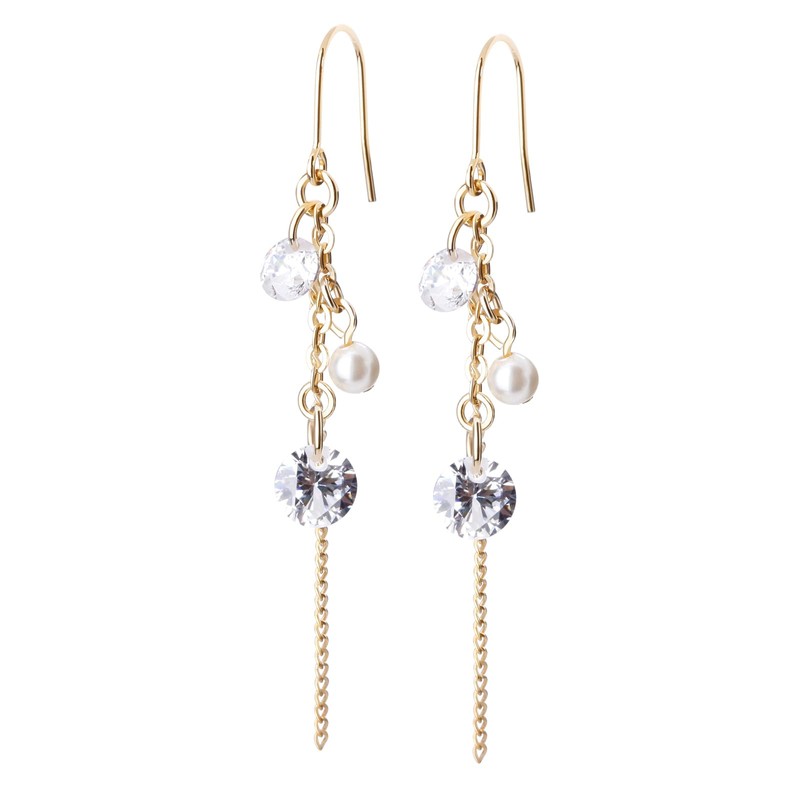 Size: Total length 1.8 inches (45 mm), 3A cubic zirconia upper 0.2 inches (4 mm) / bottom 0.2 inches (5 mm); Weight: 0.02 oz (0.5 g); Material: Brass, 3A cubic zirconia, faux pearls.