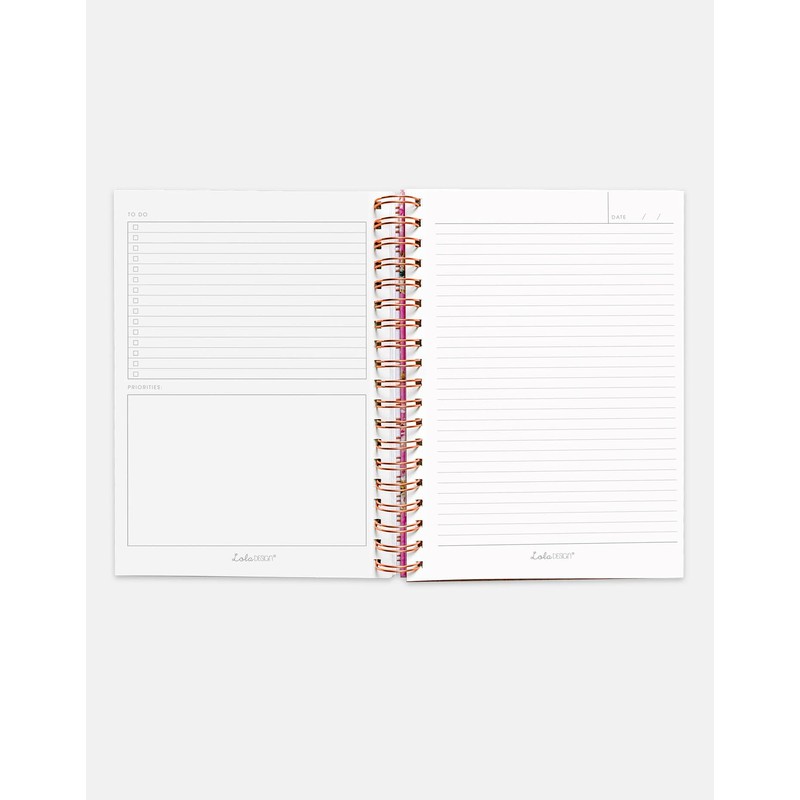 Embrace the versatility of our spiral-bound notebook, ideal for capturing thoughts, ideas, lists, and more. Its thoughtfully segmented pages offer dedicated space for to-do lists, priorities, and freeform notes, facilitating efficient organisation and enhanced productivity.