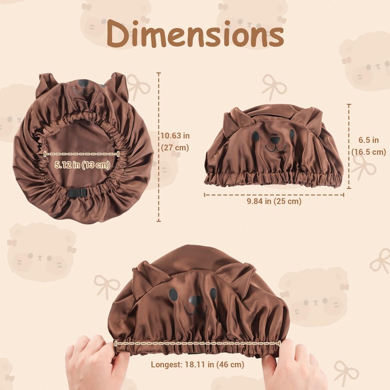 Lolalet Kids Bonnets for Girls, Adjustable Silk Baby Bonnet for Curly Hair Toddler Satin Cartoon Bonnet Cap with Elastic Band -Bear
