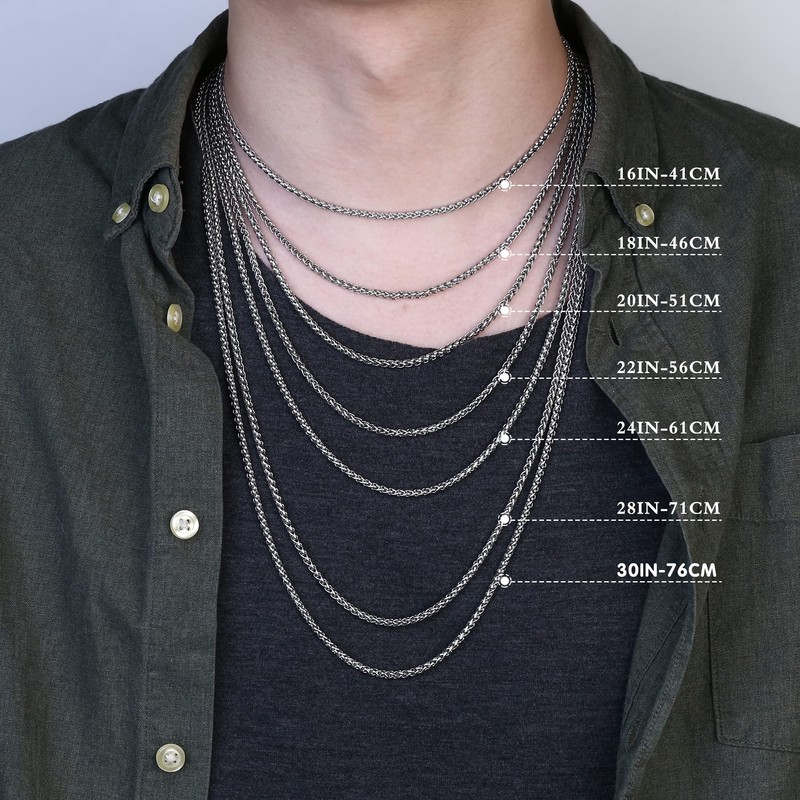 - Size--Sterling Silver Cross Necklace Pendant: Length 2 inches (35mm), Width 1.14 inches (23mm). Wheat Chain Necklace Width 3 mm, Length:16/18/20/22/24/28/30 INCH,There are 7 lengths of necklaces for you to choose. You can choose different lengths by referring to the pictures to achieve different effects