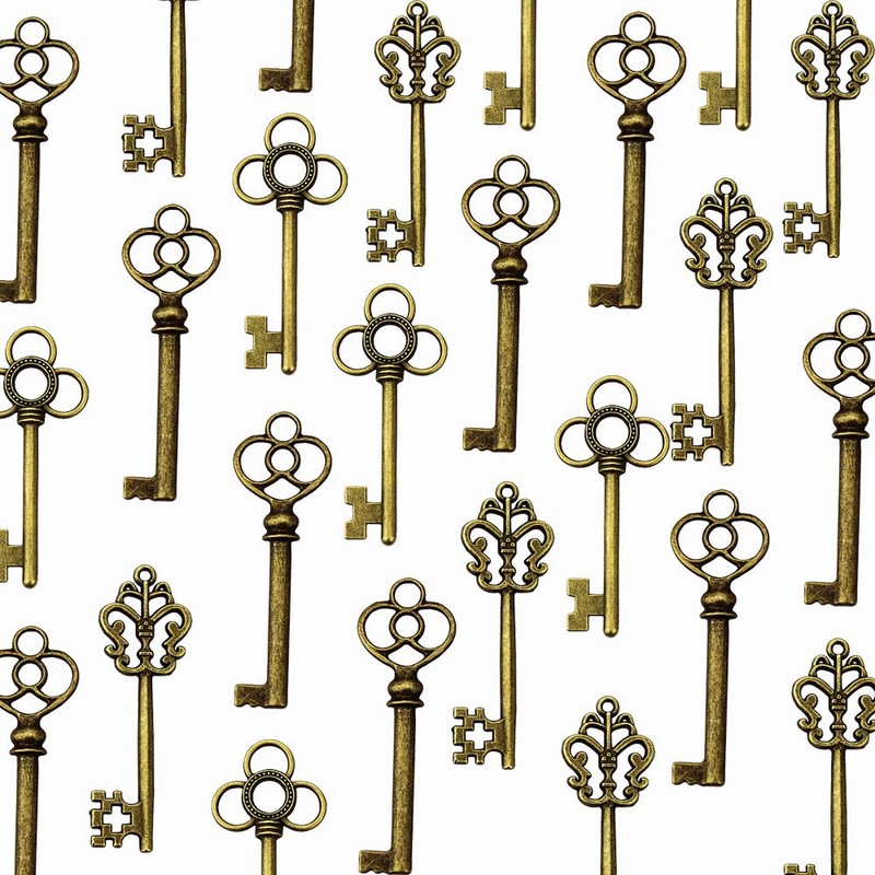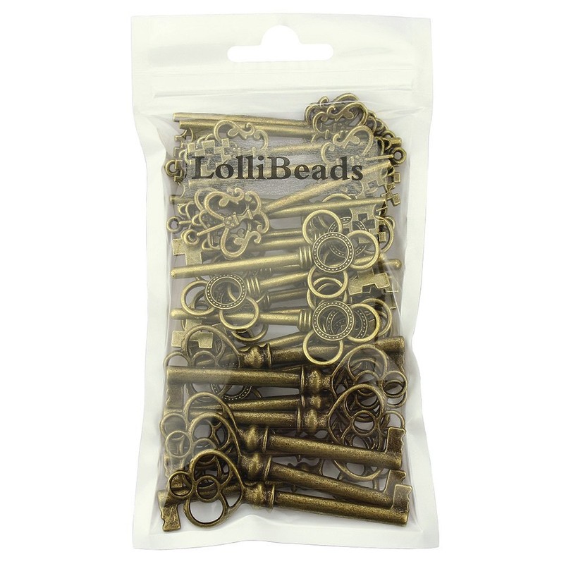 LolliBeads (TM) Mixed Set of 30 Large Skeleton Keys in Antique Bronze - Set of 30 Keys